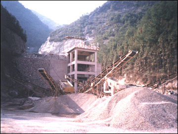 首先,石料由給料機均勻地送進粗碎機進行初步破碎,然后,產(chǎn)成的粗料由皮帶輸送機輸送至反擊式破碎機進行進一步破碎,細碎后的石料進振動篩篩分出不同規(guī)格的石子,不滿足粒度要求的石子返料進